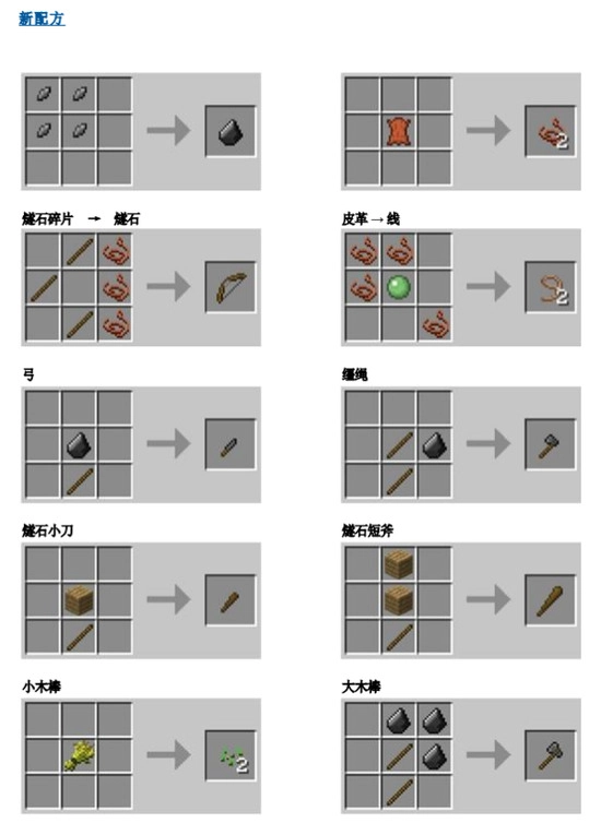 制作燧石工作台所需的材料有燧石、皮筋、木棍与橡木,也能够用燧石小刀和橡木来制作。