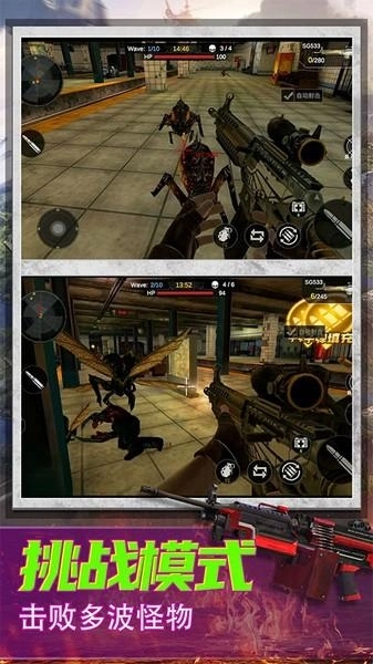 4、挑战模式:这是一种别具一格的游戏模式,它跳出了传统的人类对抗框架,创新地设计为人类抵御怪物入侵、守护城市安全的玩法。玩家携带枪械进入游戏地图后,城市会遭到怪物的大举进攻,玩家的目标就是存活下来,阻挡一波又一波的怪物侵袭。越往后,怪物的难度越高,但地图里会随机刷新补给箱,为玩家提供更强大的武器和生命值恢复。坚持到最后就能挑战成功。