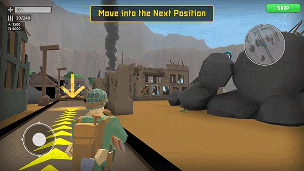 2、左边的摇杆可以控制角色走动,带着士兵往前推进。