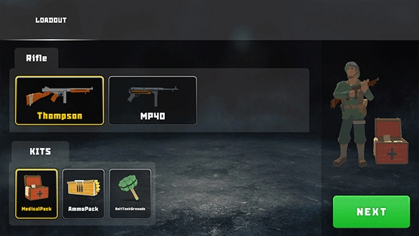 4、士兵的外观、服装和徽章均可自由更换,武器库中提供16款主战枪械以及40余种皮肤供玩家挑选。