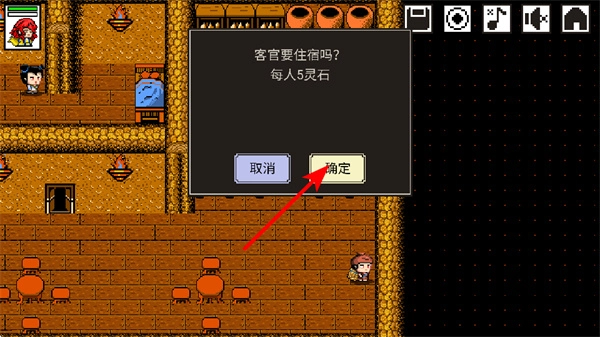 3、在客栈界面,点击确定按钮可选择住宿,这是恢复角色体力的关键操作,住宿后能让角色保持健康状态,更好地开展后续冒险。