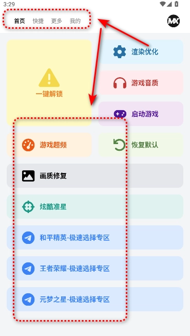 支持热门游戏一键优化:借助该工具,用户无需复杂操作,只需一键即可让工具智能识别主流热门手游并完成针对性优化,轻松享受优化后的游戏体验。 智能适配画质与帧率:工具会依据用户设备的性能水平以及实际游戏需求,自动对游戏的画质参数和帧率设置进行智能调节,在确保画面效果达标的前提下,最大限度提升游戏运行的流畅度,有效减少卡顿现象和延迟问题。