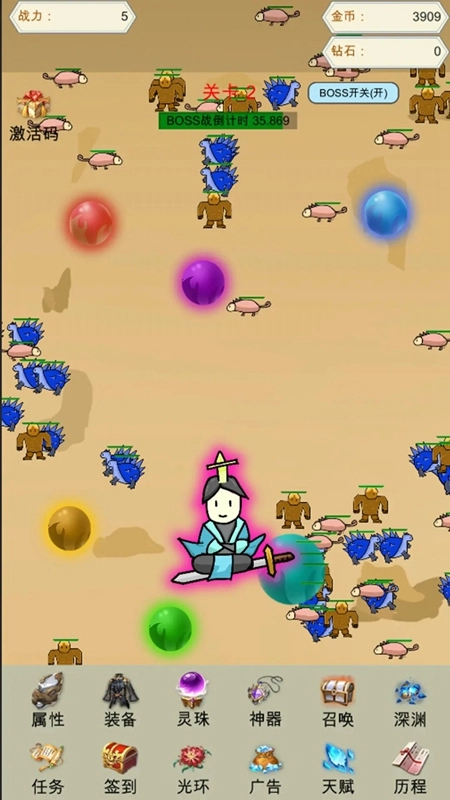 1.灵珠觉醒机制 每颗灵珠对应金木水火土雷冰风其一的专属属性,通过自由搭配可触发连锁技能,战斗特效绚烂如烟花盛放。