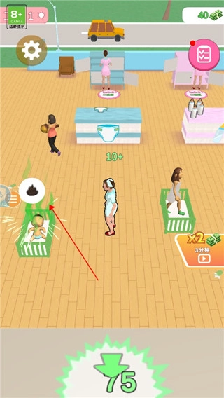 4、问题解决后,会有妈妈来接走孩子并留下钱,你走到旁边就能拾取;拿到钱后移动到绿色图标处,系统会自动扣除相应金额来解锁新的婴儿床。