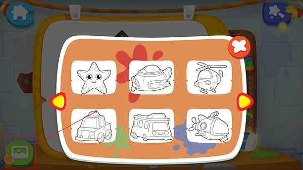 小伙伴们本站并打开游戏之后,可以选择左边的图案绘画开始让宝宝绘画。