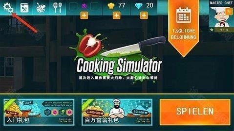 1、进入到料理模拟器游戏主界面之后点击左上角的“齿轮”按钮。