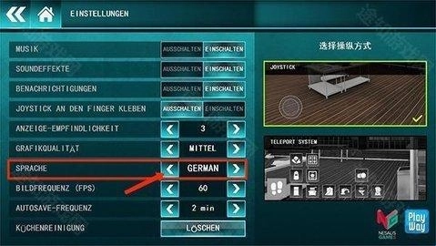 2、在设置界面中点击“SPRACHE”的小三角后进入到语言设置界面。