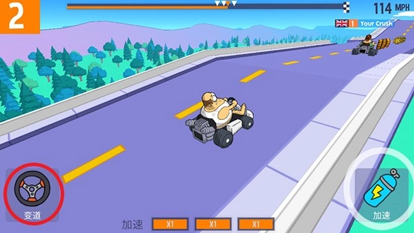 玩家进入游戏后,能看到左侧有方向盘图标,点击该图标即可完成变道操作。