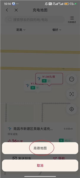6、点击“导航”按钮,选择所需的导航地图,即可直接前往选定的充电站。