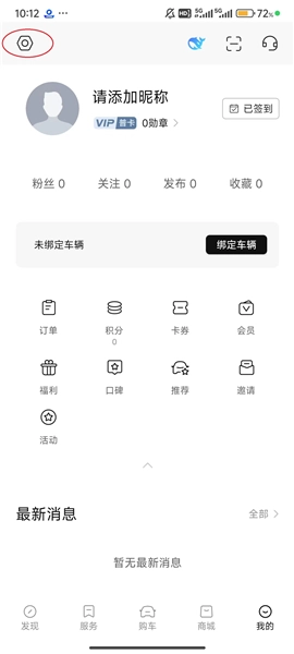 2、点击屏幕左上角的“设置图标”。