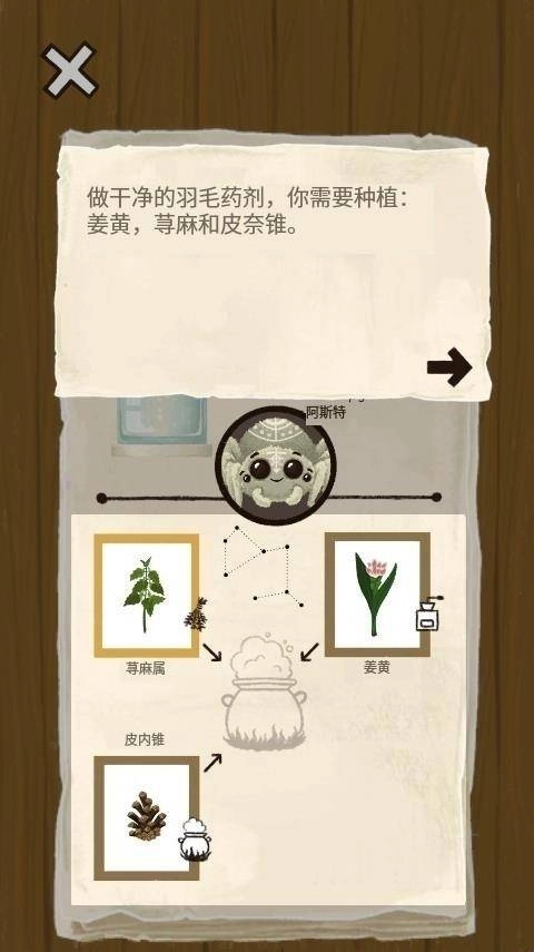 3、玩家的目标是成为一名药剂师,需要在商店购买制作羽毛药剂所需的姜黄、荨麻属和内皮锥这几种材料。