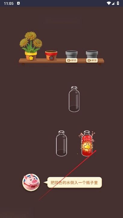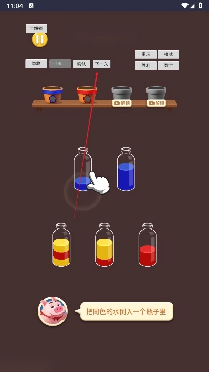 3、消除全部的水瓶即可闯关