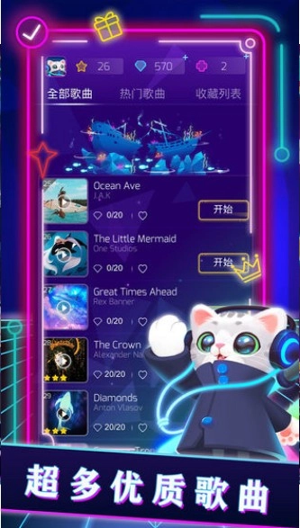 3、丰富多彩、多种多样的音乐曲目,升华你的沉浸式体验,让你100%投入其中;