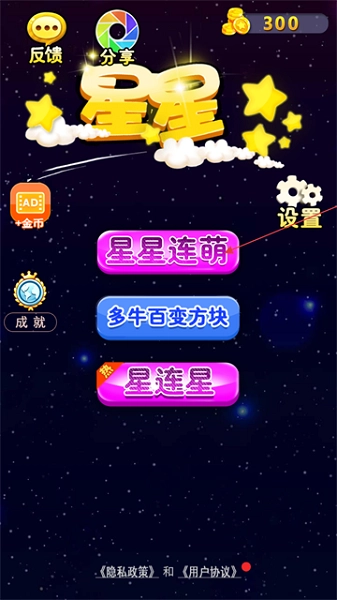 星星连萌是一款经典的消除益智游戏,游戏里有大量各色各异的星星,只要找到3个一样的就能消除。每局都有时间限制,你得不停消除,时间才不会快速流逝。这里还有星星俄罗斯方块的玩法,动动脑筋,看看自己最高能得多少分。游戏有道具辅助,而且没有收费项目,快来和我一起消灭星星吧!另外还有能帮你得高分的开心消消乐攻略哦!这是一款不一样的消灭星星消除类游戏,除了传统的消灭星星玩法,我们还创新了星星连萌玩法,超级耐玩,娱乐性更强。