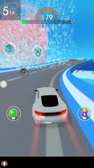 2、在驾驶过程中注意自己的驾驶节奏,让赛车不会碰撞到障碍物,使用道具快速提升赛车速度。