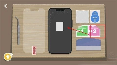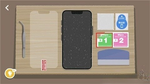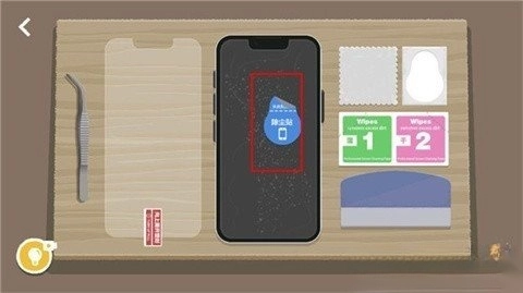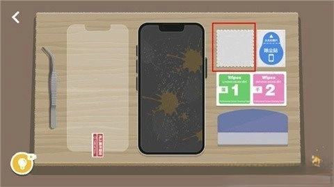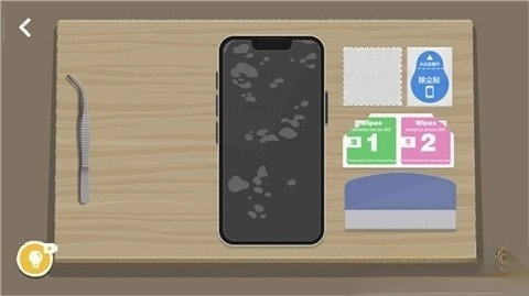 1.游戏启动后,用镊子在手机边缘处滑动操作,把破碎的手机膜取下,同时要将所有碎片都清理干净。