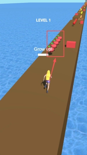 3、然后,收集赛道上的增益道具让角色“Grow”变大,轻松撞开障碍并冲过终点。