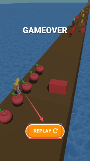 4、最后,若出现“GAMEOVER”,点击“REPLAY”立即重开,继续挑战更快通关记录。