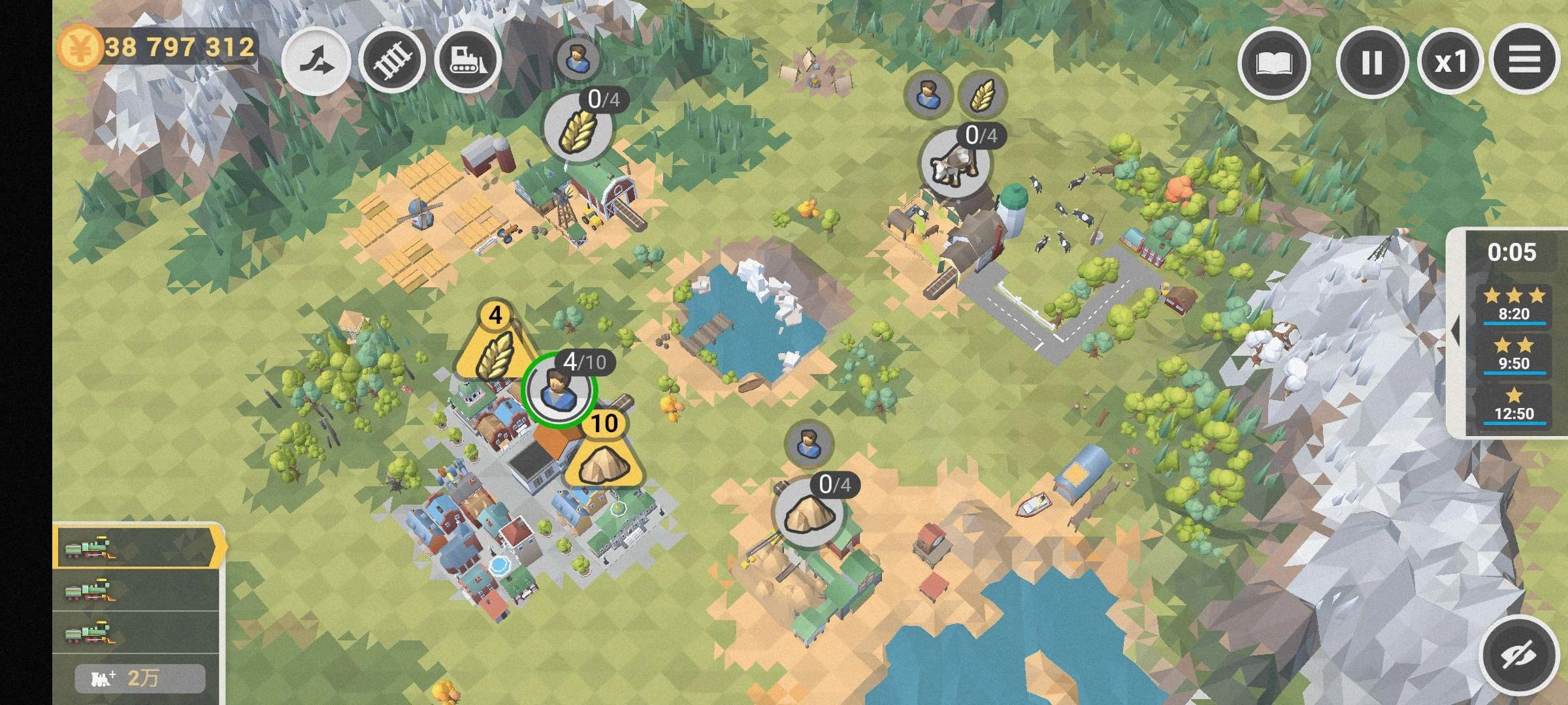 作为一款模拟经营类游戏,《铁路工程师》的设计与传统模拟经营玩法不同,它并非简单却内容匮乏,而是从开局画面到后期内容解锁都体现出“丰富”的特点。游戏采用低角度多边形画风,这种风格通常搭配第三方视角,玩家以俯视角进行游戏,类似弹幕射击游戏的视角形式。尽管游戏界面不支持放大观察,但多边形设计让场景布置十分耐看,其画风与《人类一败涂地》相似,虽然画质不及高清晰度作品,但大桥、树林、草地、岩石等丰富多样的场景元素分布,在视觉体验上仍有不错的表现。