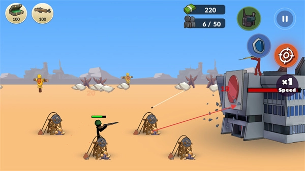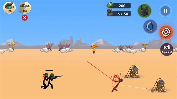 把射击玩法和塔防元素深度融合在一起,既要操控火柴人士兵对敌人进行精准射击,又得合理安排防御工事来阻拦敌军的进攻,同时要兼顾主动出击与被动防守的策略思考。