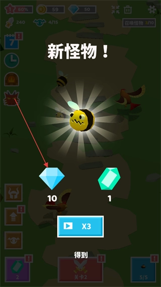 3、当第一次解锁的怪物种类出现时,会赠送钻石和宝石作为奖励。