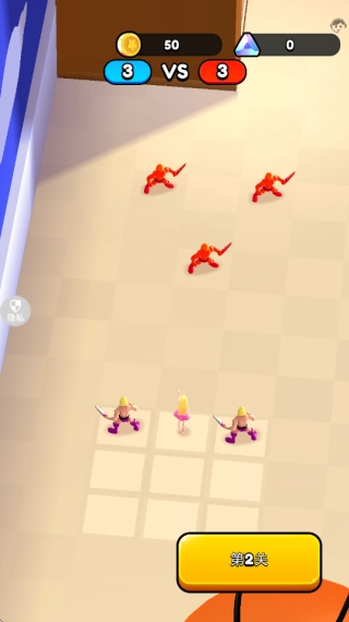 1、进入游戏后点击开始战斗开启关卡,熟悉玩具卡牌购买与部署操。