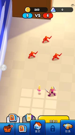 战斗胜利后收集卡牌和金币,用这些资源购买适合当前关卡的玩具,再把相同的玩具合成升级,以此来增强军团的整体战斗力。