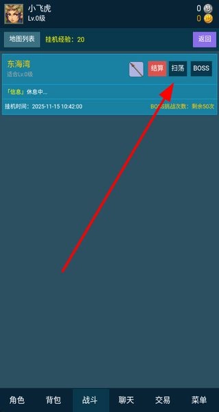 1、在东海湾等地图进行扫荡,获取经验、装备和道具等资源,提升角色等级和战力,推进游戏的冒险进程。