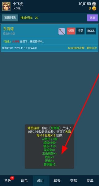 2、获取挂机奖励,通过地图挂机战斗,消灭怪物,获得经验、银币和各类道具,助力角色的成长和发展。