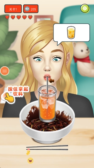 1.进入第一个关卡任务,帮助主播吃掉炸酱面吧!