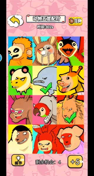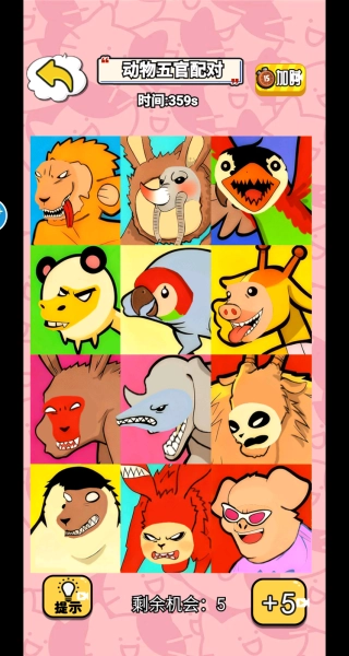 1、难度梯度遵循科学进阶逻辑,从2种动物五官互换的基础模式逐步升级至5种动物五官混排的高阶玩法,既能让新手轻松上手,也能为老手带来持续的挑战体验。
