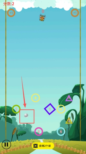 1、开启闯关准备:进入关卡后留意数字方块的分布情况,确立“消除方块、争取高分”的目标,掌握物理反弹的规律以及弹球的发射方法。