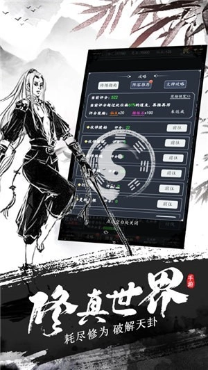 游戏里以文字形式把震撼的修真世界完美展现,整体画风很出色,修真炼体的阶段划分清晰,能不断提升属性和筋骨,玩起来有独特的韵味。降魔伏妖、飞升轮回,玩起来真的很棒。