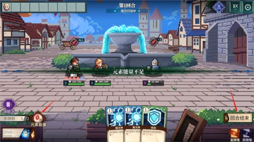 6、每个卡牌上会显示需要消耗的能量点,当左边能量点显示为0时,需要点击回合结束