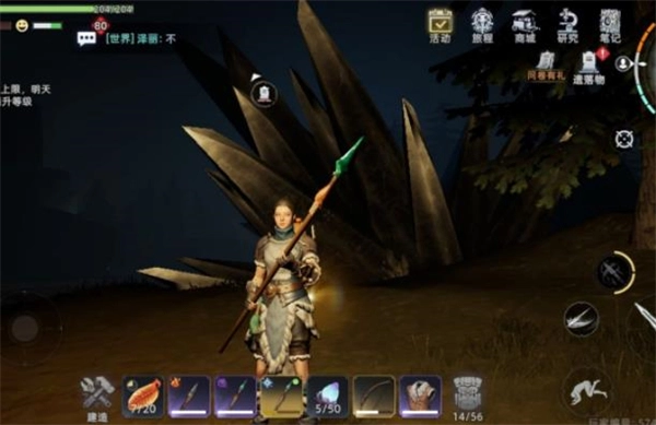 1、首先要做的是物资准备:两根火把、一个篝火、50份轻木、一把燧石镐,这些都是必须备齐的。等物资准备妥当后,就把家园打包好,沿着主线任务的指引从温莎镇进入黑暗森林。一路上要像蝗虫过境一样,见到荧光果实、亚麻、琉璃苣、蓝莓就全部收集起来——荧光果实能用来解锁并制作荧光药剂,这种药剂既能让自己发光10分钟,也可以直接丢出去,丢出后能持续发光120秒。
