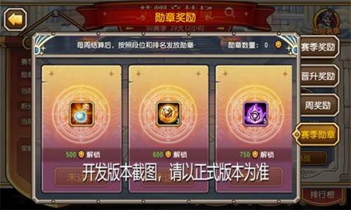 4、每周结算将按照段位和排名发放勋章。赛季勋章达到一定数量后,可领取对应奖励。