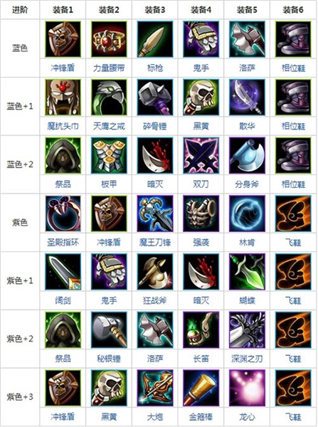 巨魔总共拥有十件紫装,这个数量也是中规中矩,整体出装是偏重于进阶属性(血量,攻击,防御,魔抗、暴击等),忽视基础属性(三围),这样的结果是巨魔的三围会比较差,基础差。