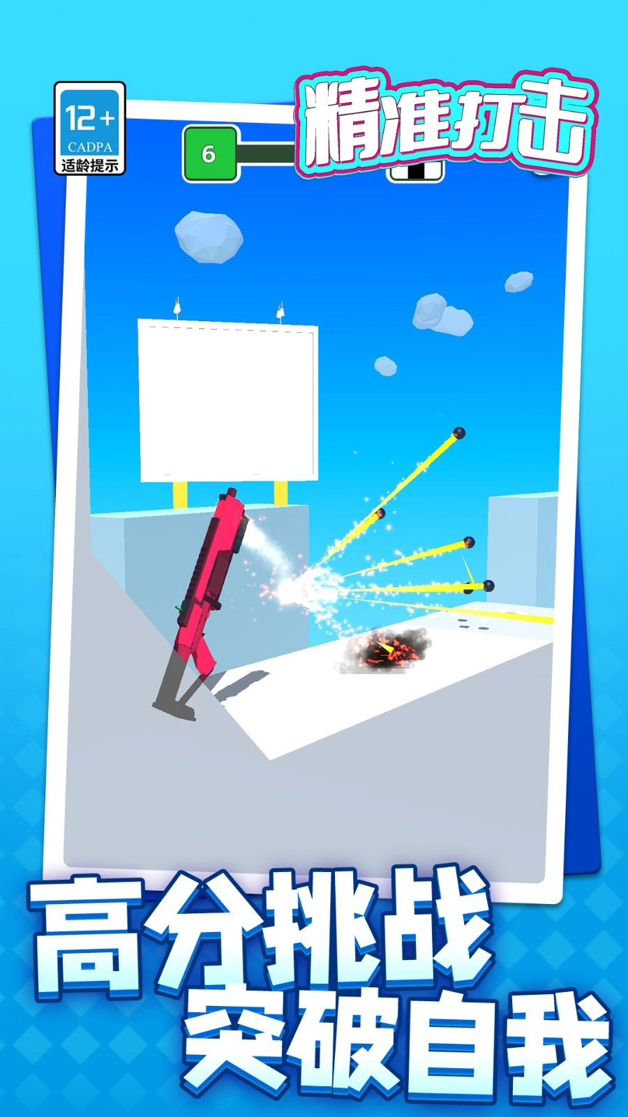《精准打击》是一款画风简约的射击闯关游戏,海量精心设计的关卡等待您挑战体验。游戏核心玩法是通过精准射击命中目标,在不断刷新高分的过程中突破自我极限。游戏上手简单,还能模拟高度还原的战斗场景,让您尽情展现射击能力。随着关卡推进,难度会逐步提升,记得把握好每次射击的角度哦!