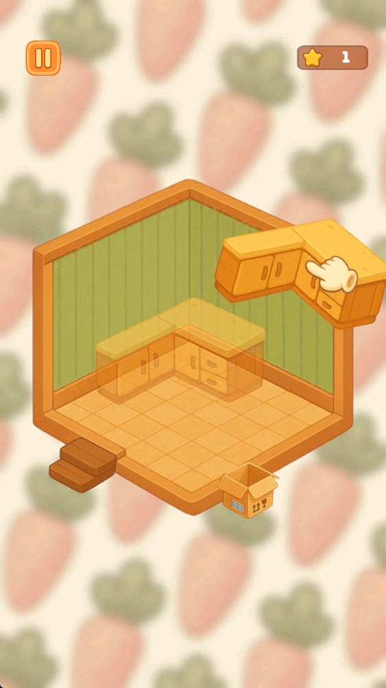 3、物品被正确放置后会自动固定位置,这时您可以继续从箱子里拿取新物品开展后续的装饰工作,一步步完善房间的设计。