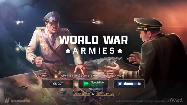 1、使用账号登录游戏,若没有账号,可点击左下角以游客身份进入;