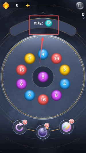 3、按目标板把32、16、8依次射入缺口,小数字优先堆叠。