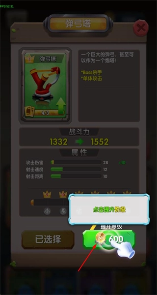 4、消耗资源升级塔防建筑,提升其攻击伤害、射击速度、射击范围等属性,增强战斗能力。