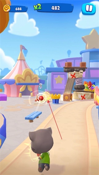 1、瞄准游乐园中的道具和敌人,发射攻击,获取分数。