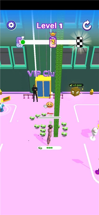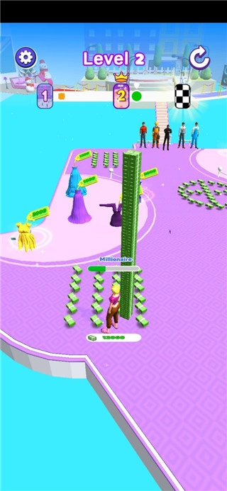 在游戏里,玩家要一边前进一边收集钞票,用这些钱购买衣服、包包、鞋子、头发、帽子之类的物品。等成为时尚领袖后就能进入下一层,之后继续拾取沿途的钞票,去买更精致漂亮的华服,最后还能牵手小哥哥。