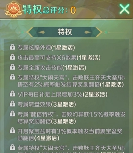 3、每个特权都拥有不同评分,所有评分相加可参与排行榜。