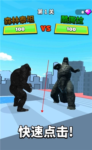 游戏玩法十分简单,容易上手。玩家需要操控怪兽前往敌人所在之处,途中会遇到各类障碍物,得及时躲避;同时还会出现能量瓶和武器,拾取它们可以提升怪兽的体积、等阶与能力,这样在最终决战时就能更轻松地消灭怪物,趣味性十足。