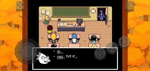6、克里斯抵达学校时,老师艾菲斯(Alphys)已经安排好了小组作业,要求学生两人一组合作完成。但克里斯到的时候,其他同学都已经找好搭档了。这时,玩家需要前往第一排最左边的同学处,按下“乙”键与其对话;随后又有一个人出现了。