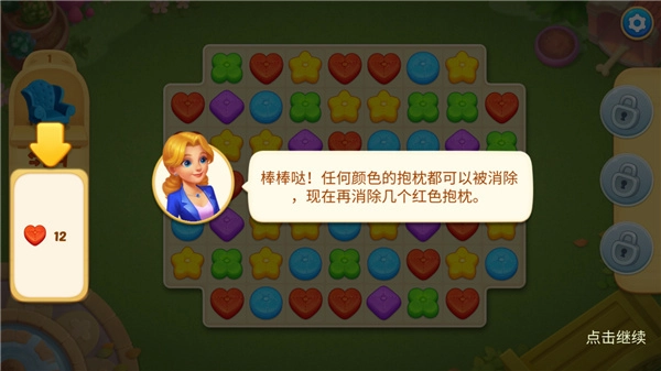 2、接着再依据左侧需要消除的颜色抱枕,进行相应的消除操作;