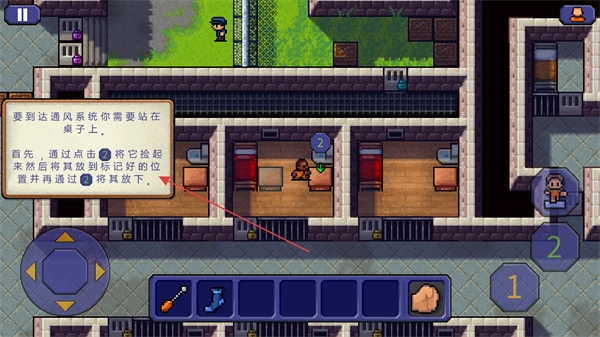 《逃脱者1》是一款围绕监狱逃脱展开的策略生存游戏,它运用经典且萌趣的像素画风搭建出别具一格的监狱场景,把新颖的监狱生活题材和多元玩法相融合。玩家需要操控被囚禁的犯人,通过虚拟按键来完成移动、攻击等操作,利用殴打狱警引发混乱、攀爬通风管道隐藏踪迹、挖掘地洞开辟逃生路径等多种手段,制定详尽的计划并加以执行,最终达成从戒备森严的监狱里顺利逃脱的目的。