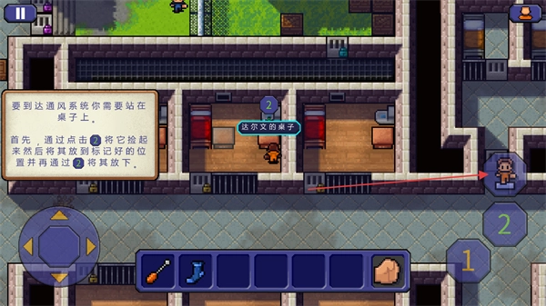 3、点击右侧人物图标,交互桌子,为到达通风系统做准备。